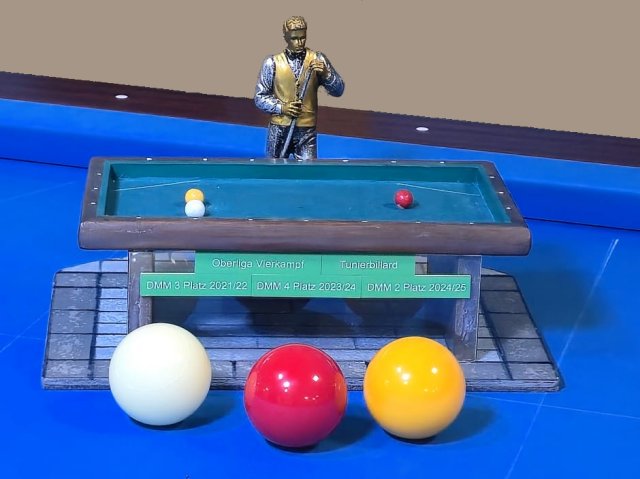 Die Freie Partie gewann Franzel Simon deutlich mit 300:36 mit einer Höchstserie von 157 Punkten in nur drei Aufnahmen. Martin Benstöm gewann parallel im Einband mit 121:86. Damit war dann der 6:2-Sieg erreicht und der zweite Tabellenplatz gesichert – herzlichen Glückwunsch und toi-toi für das Mehrkampfspiel am Sonntag.