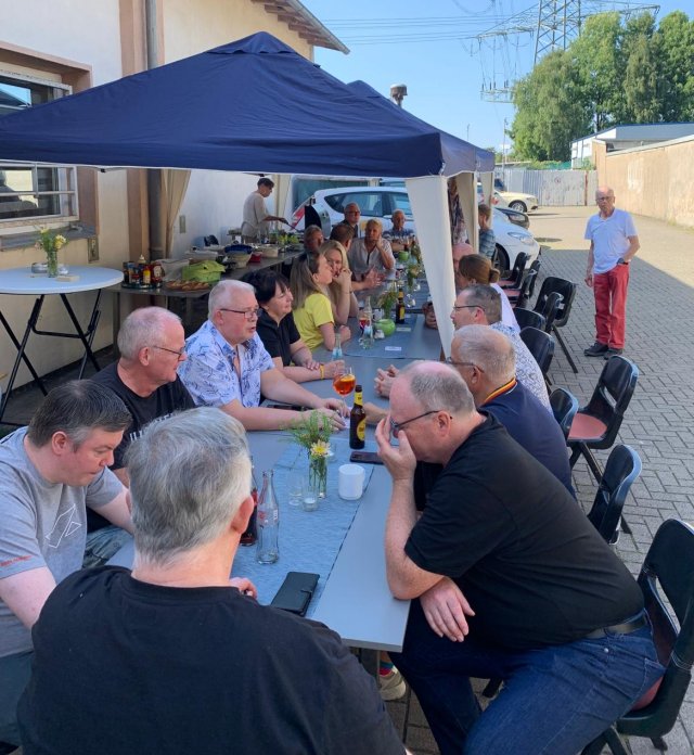 Nach einer reichhaltigen Kuchenbar am Nachmittag ließen wir den Abend mit kühlen Getränken, leckeren Salaten, Dips sowie Köstlichkeiten vom Grill (danke an die Grillmeister Anja Maier und Martin Nockmann!) ausklingen. Ein dickes Lob auch an diejenigen, die die mitgebrachten Salate, Dips und Kuchen zubereitet und gestiftet haben und so zu einem geselligen Miteinander beigetragen haben, das allen in bester Erinnerung bleiben wird und nach einer Wiederholung verlangt!